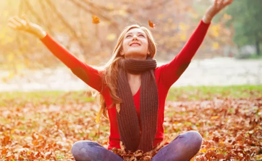 A group of adults standing outside in an autumn setting. A group of adults standing outside in an autumn setting.